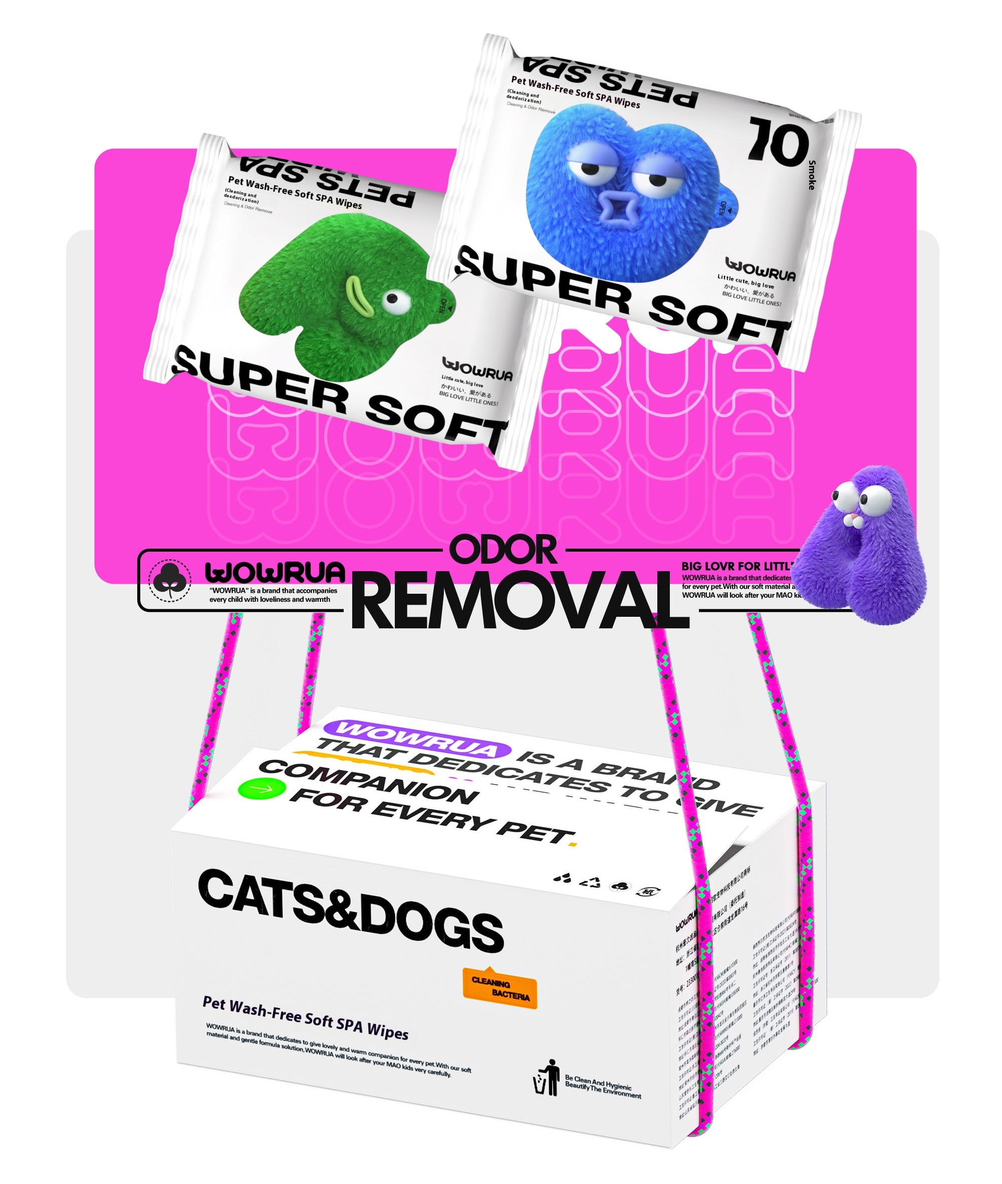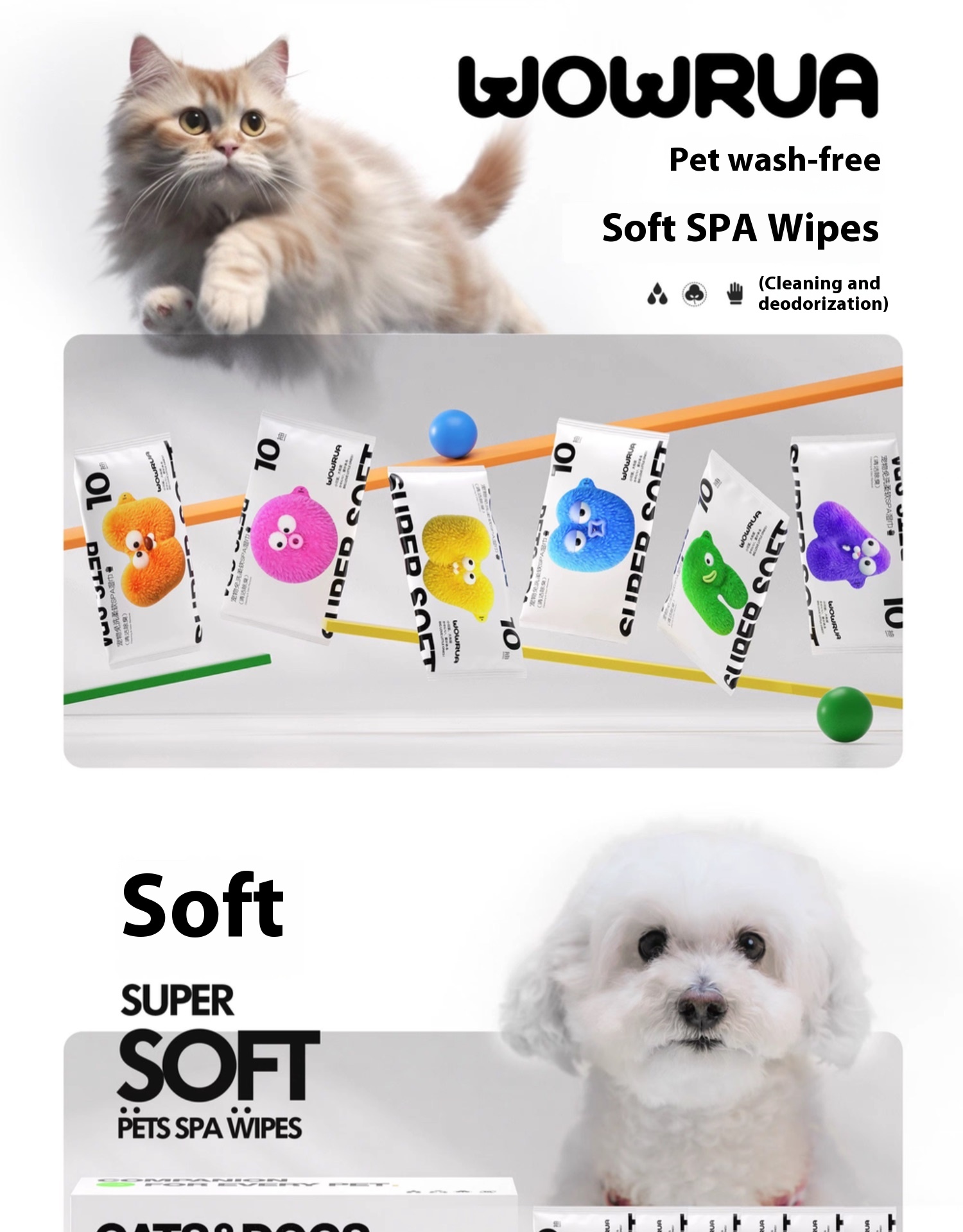 wowrua pet wipes for cats and dogs portable disposable deodorant wipes for cleaning Butt tears