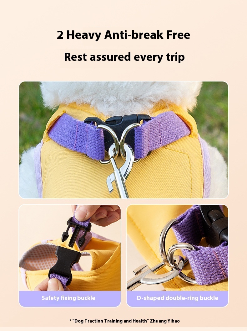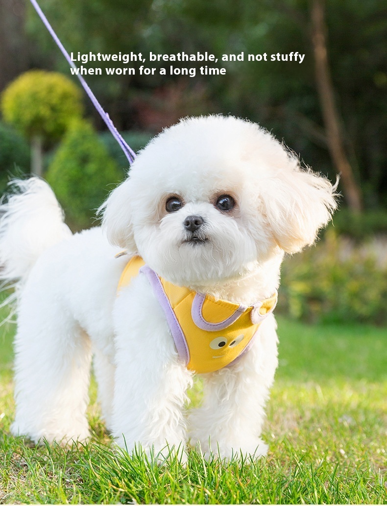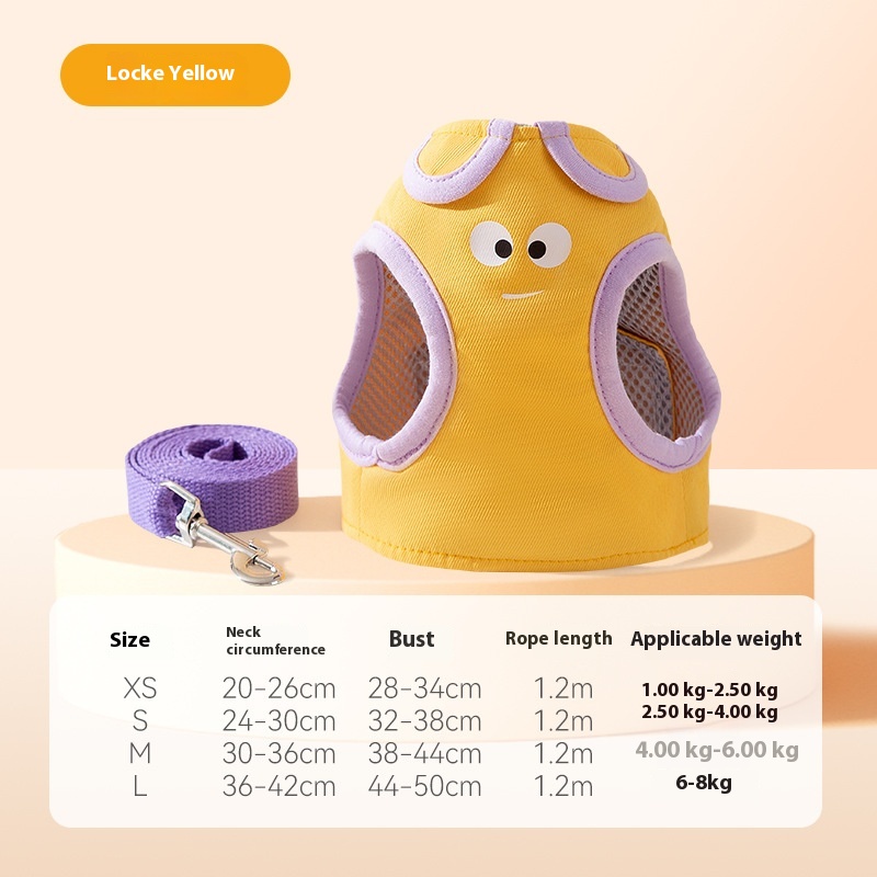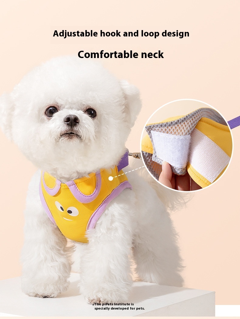 Yellow purple stitching funny cartoon ear shape hand holding rope small dog cat outdoor travel convenient pet supplies